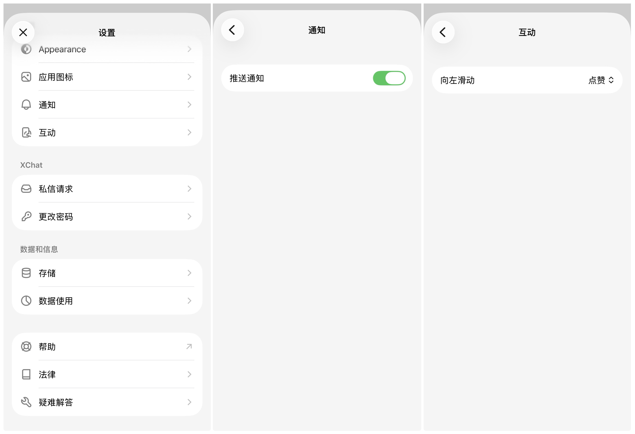 下部には検索バーがあり、左側の「X」アイコンをクリックするとXアプリに直接移動し、右側の編集アイコンをクリックすると新しいチャットが開始されます。機能設定ページで選択できるコンテンツも非常に限られています。